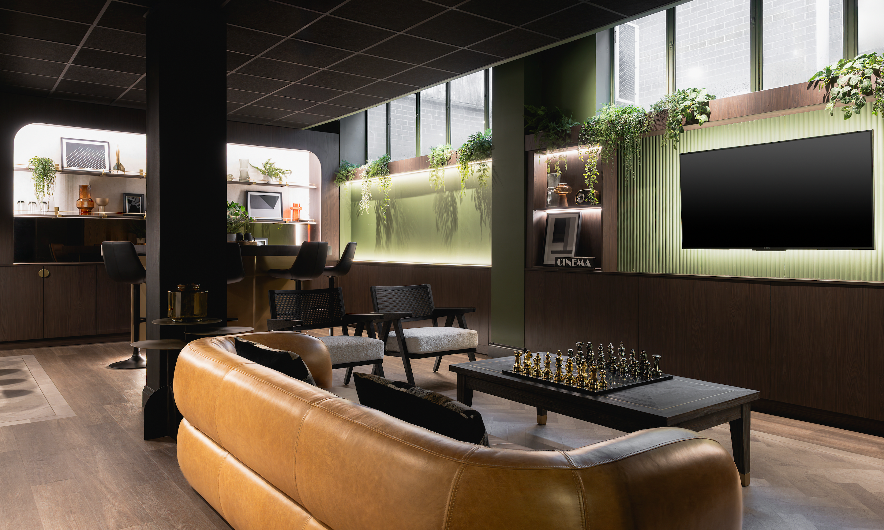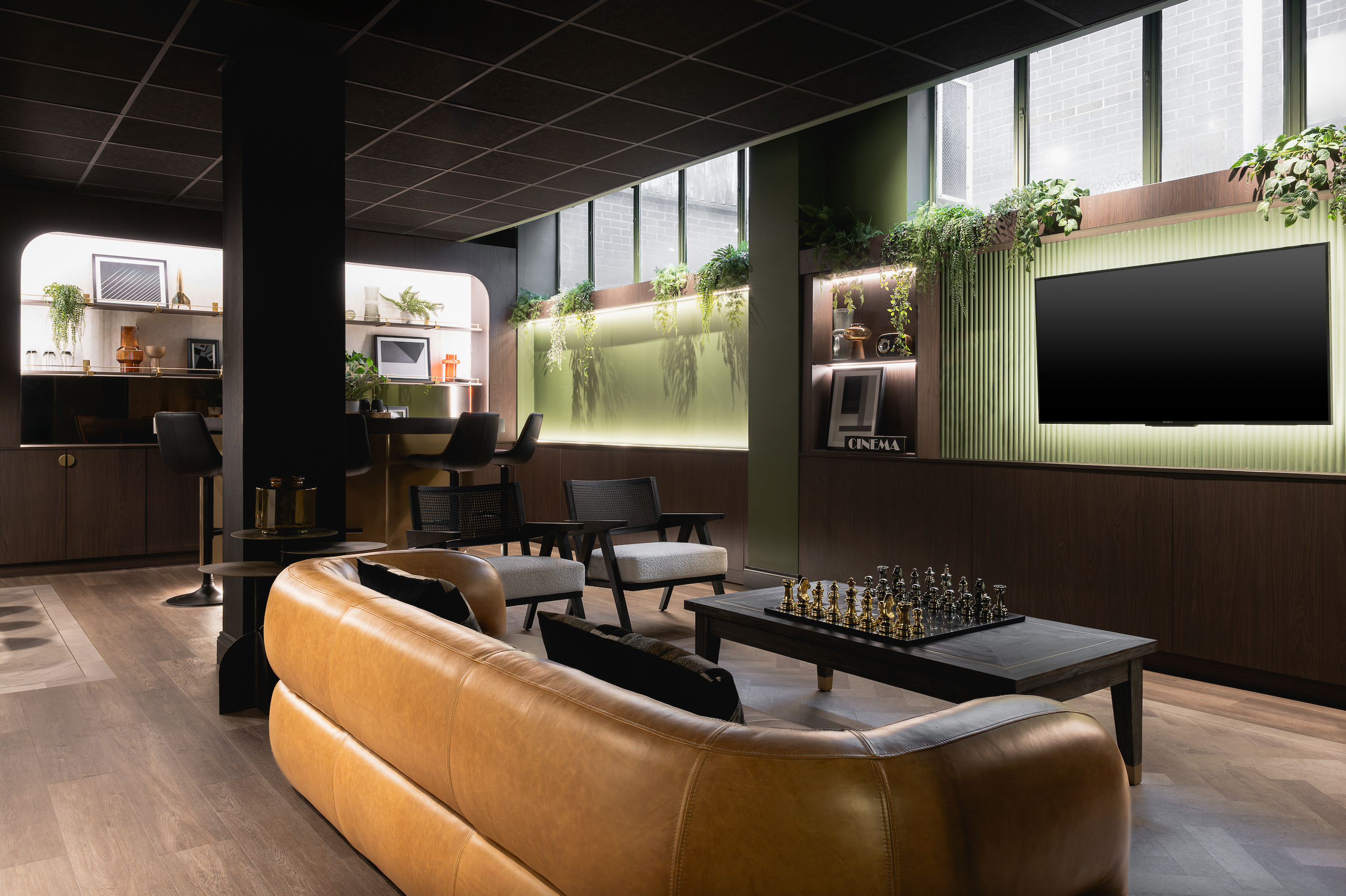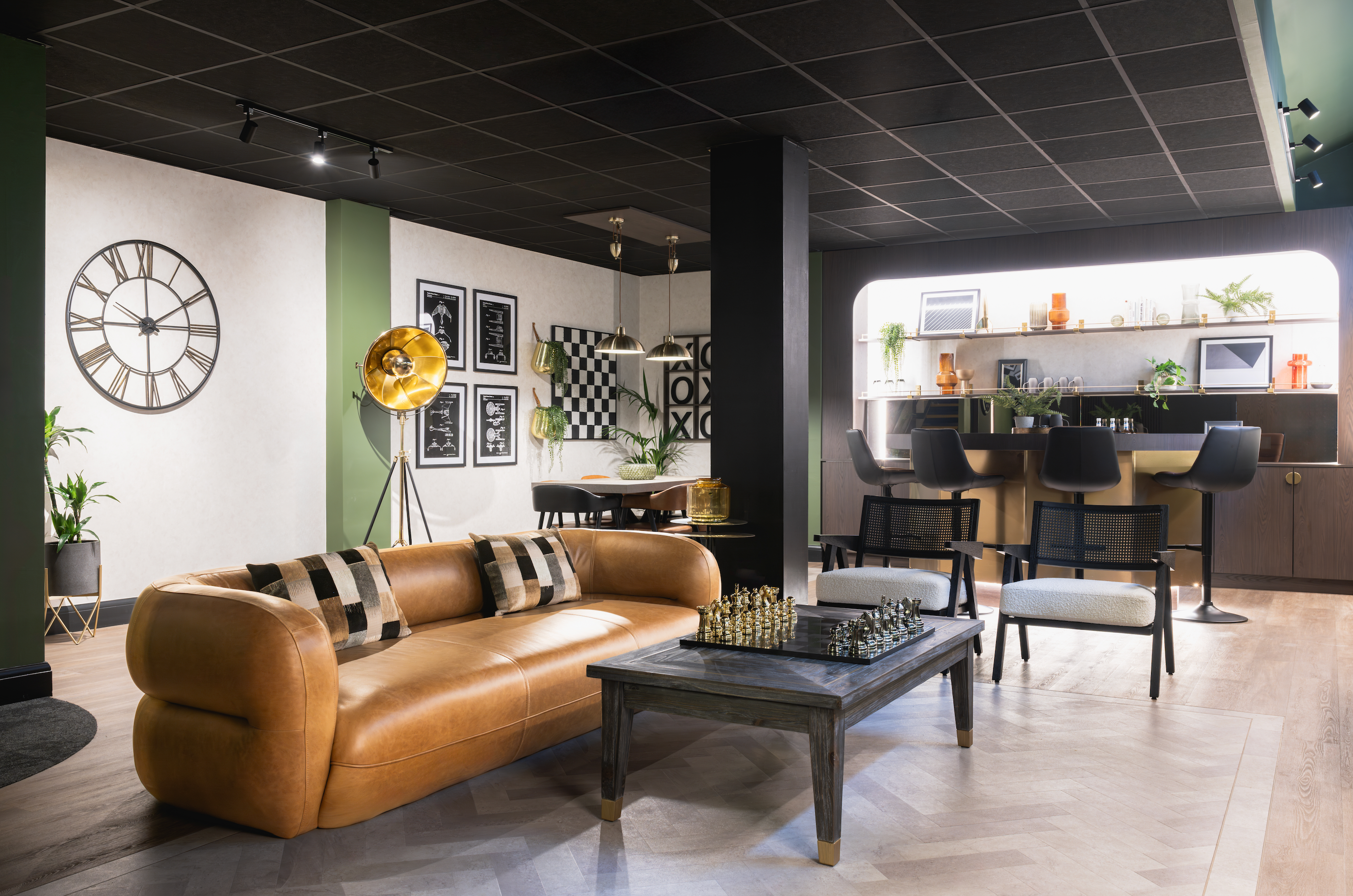 Here's how we created a games room, coffee bar, dining space, media lounge, and breakout area all in one - designed, delivered, and styled by our team from concept to completion.