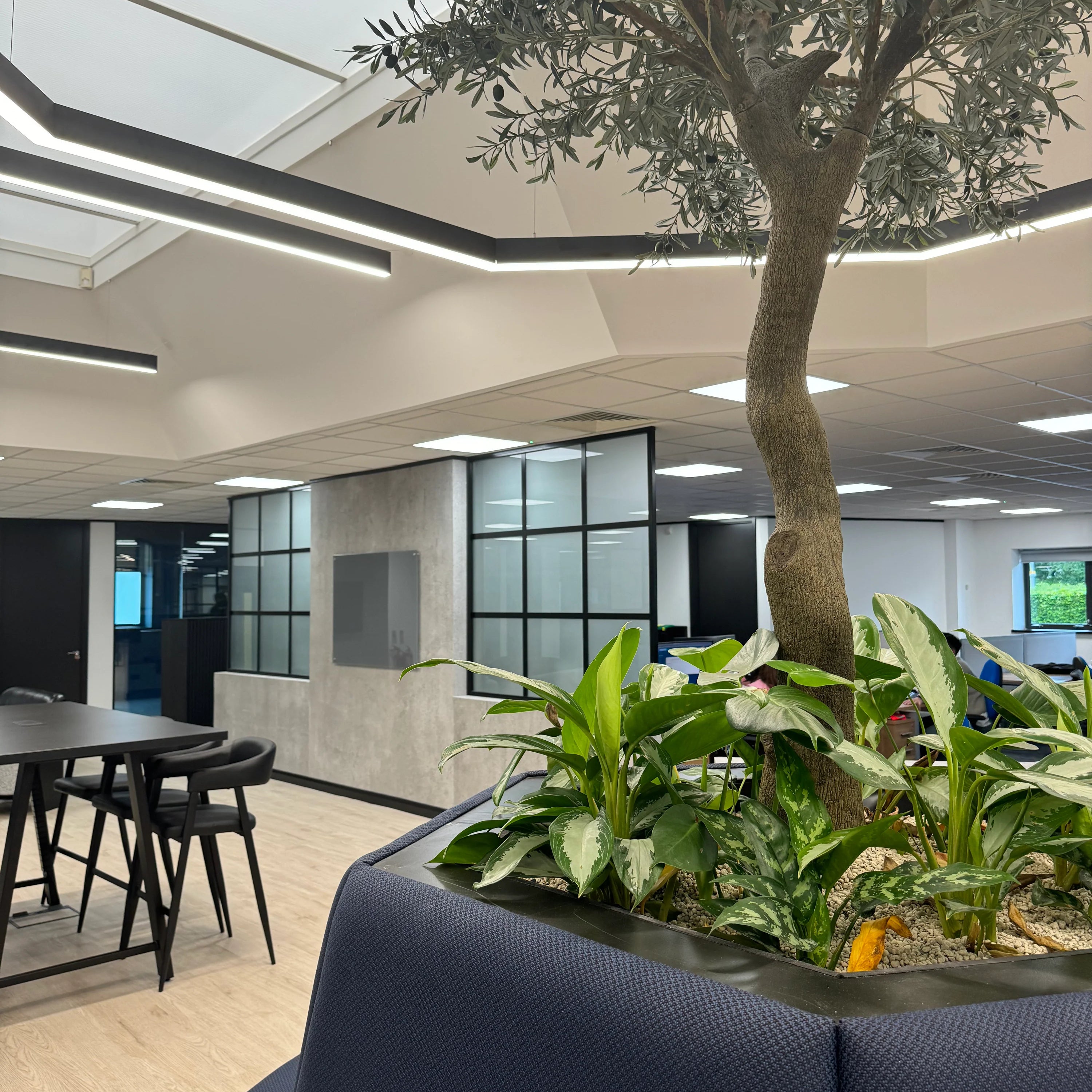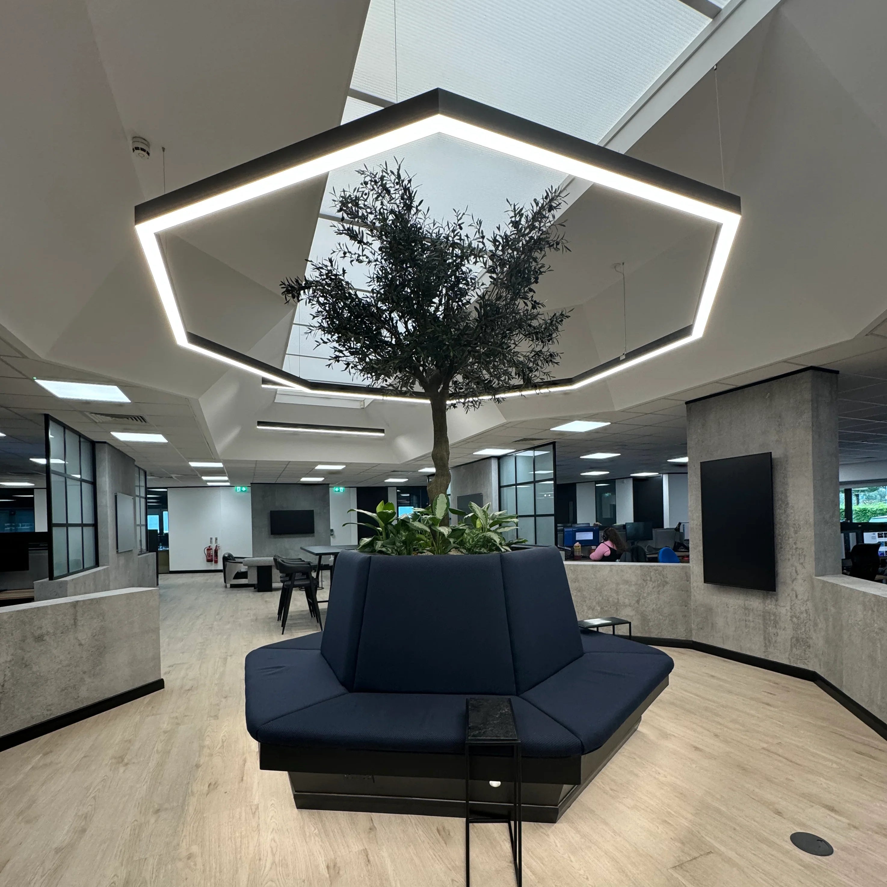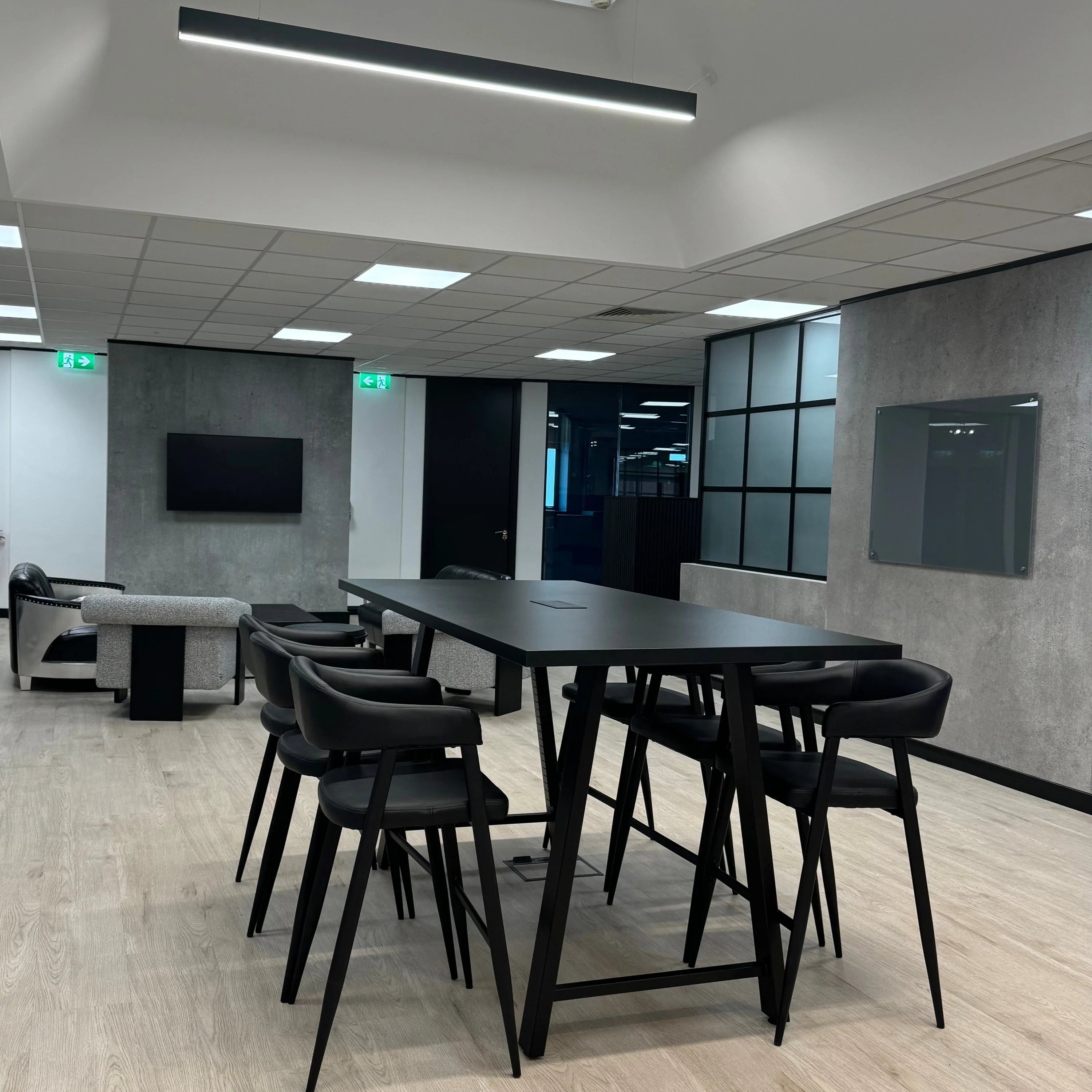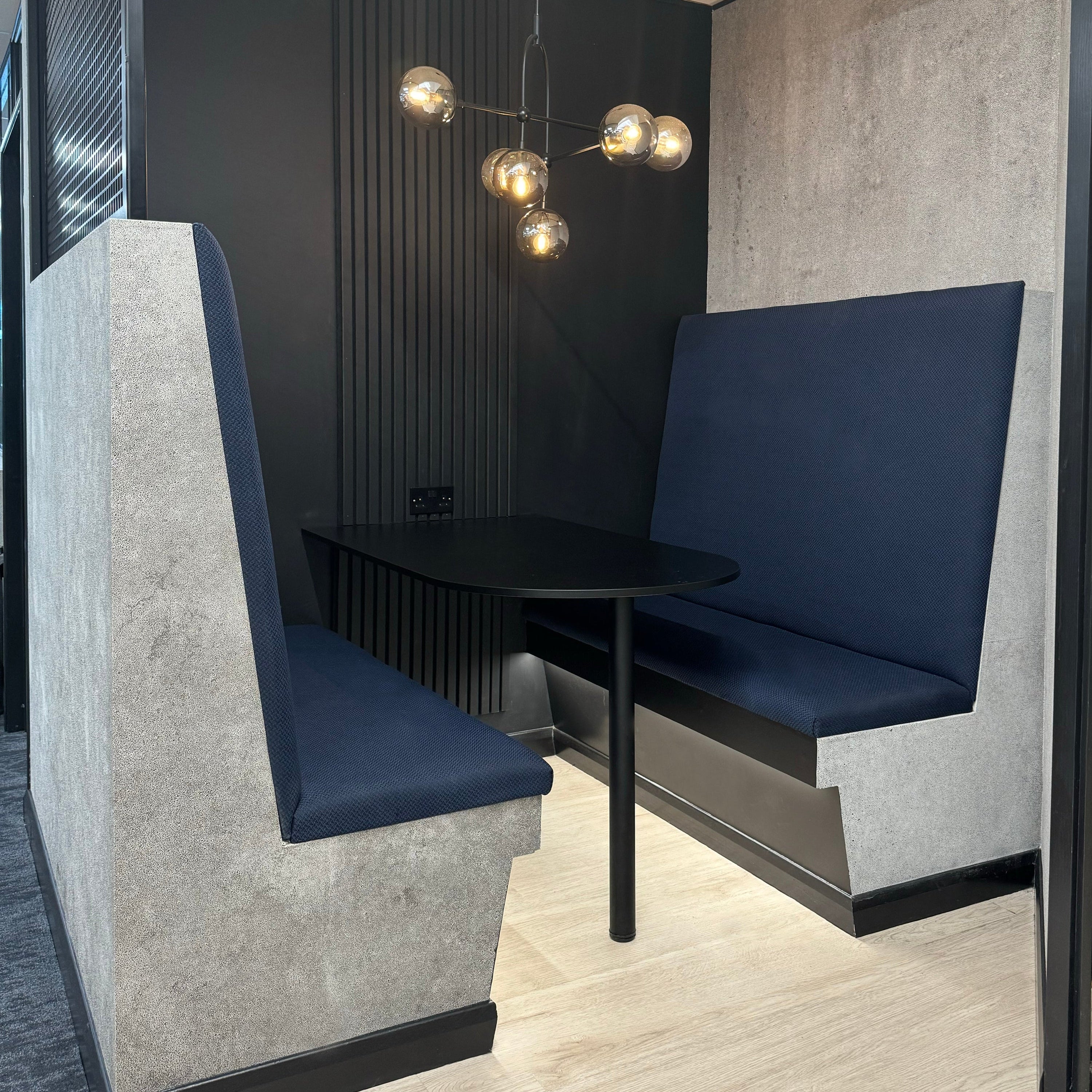 This breakout space was part of a full workplace transformation for a leading tech company in Bolton. Designed to give staff a stylish, relaxed place to pause, recharge, and socialise, the breakout area is a key feature of the wider wellness-focused design.