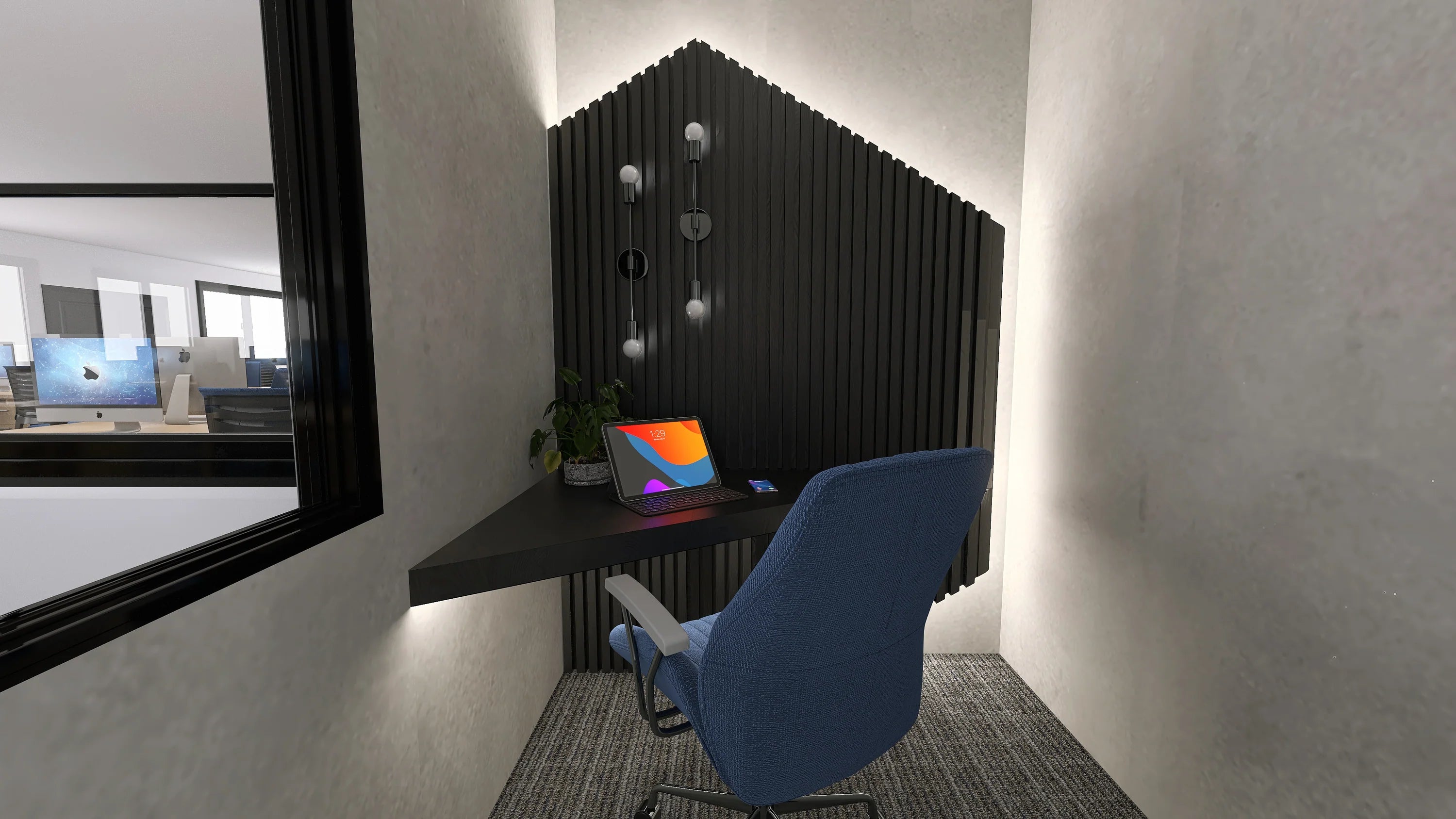 This purpose-built private call space was designed as part of a full-scale interior transformation for a technology company in Greater Manchester. The goal was to create a quiet, comfortable environment for virtual meetings, focused calls, and moments of privacy in an otherwise open-plan setting.