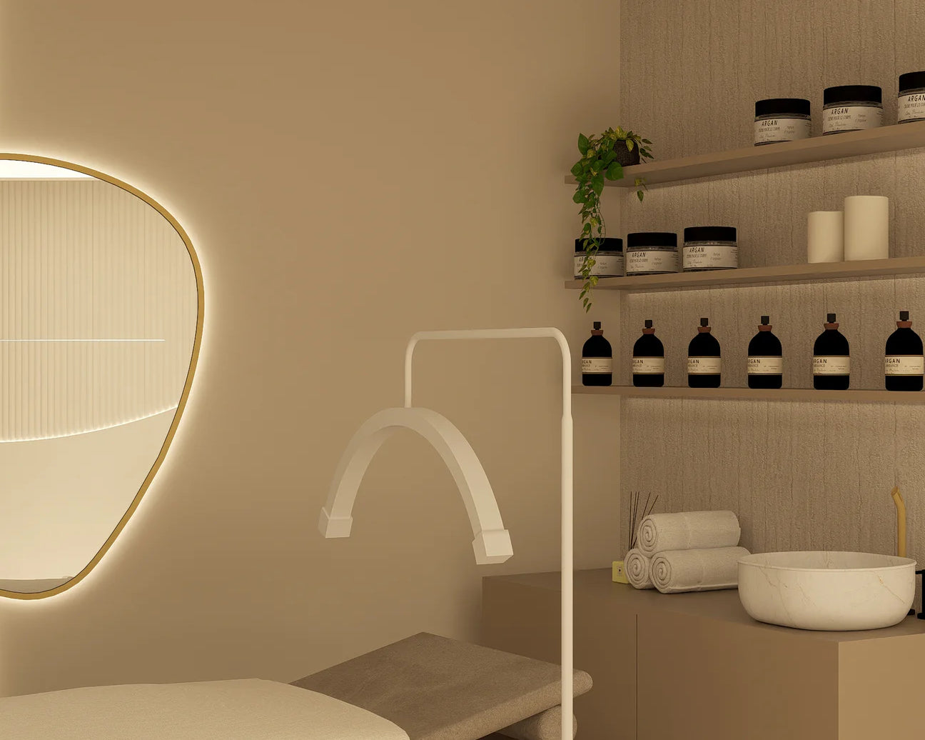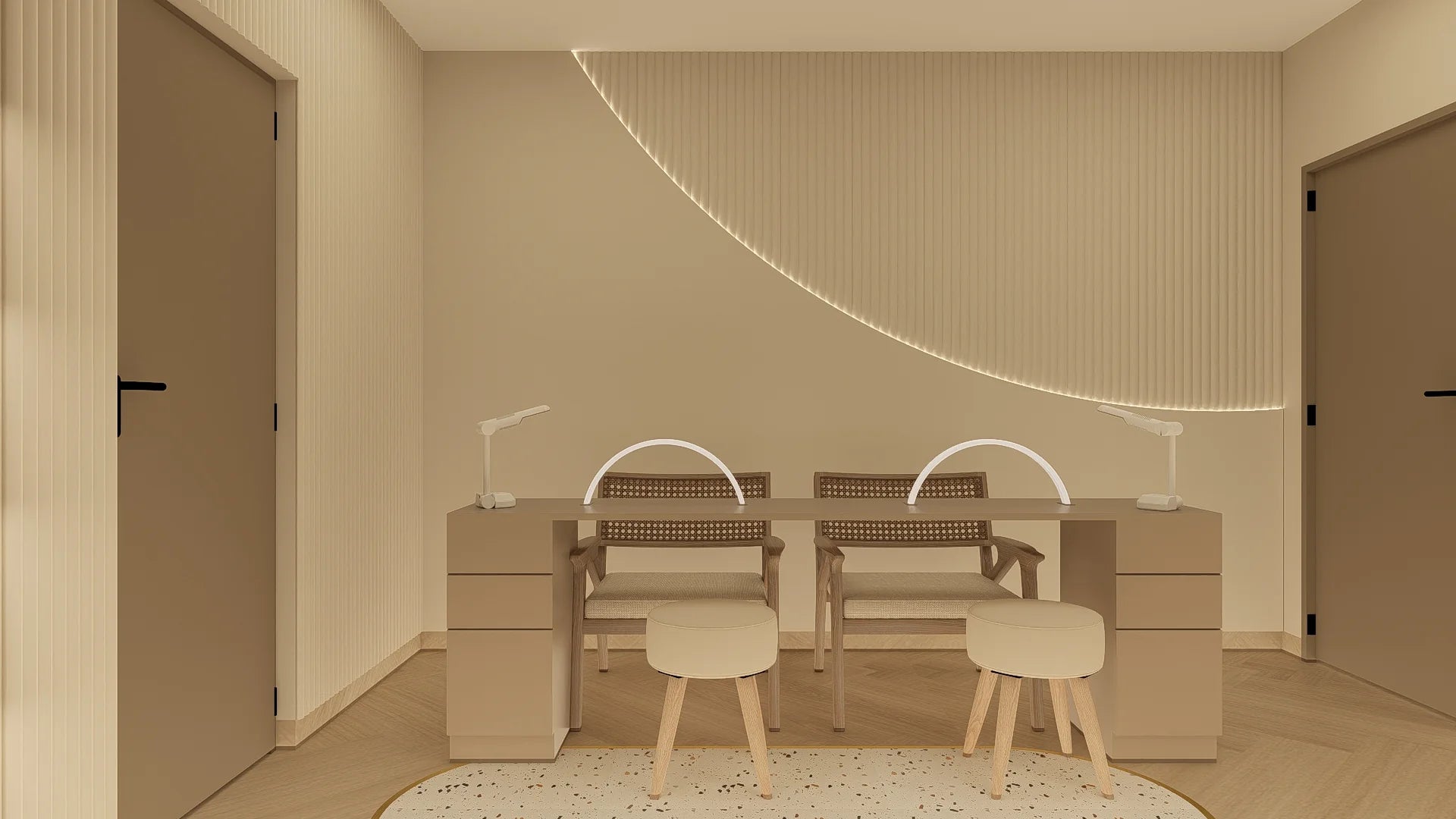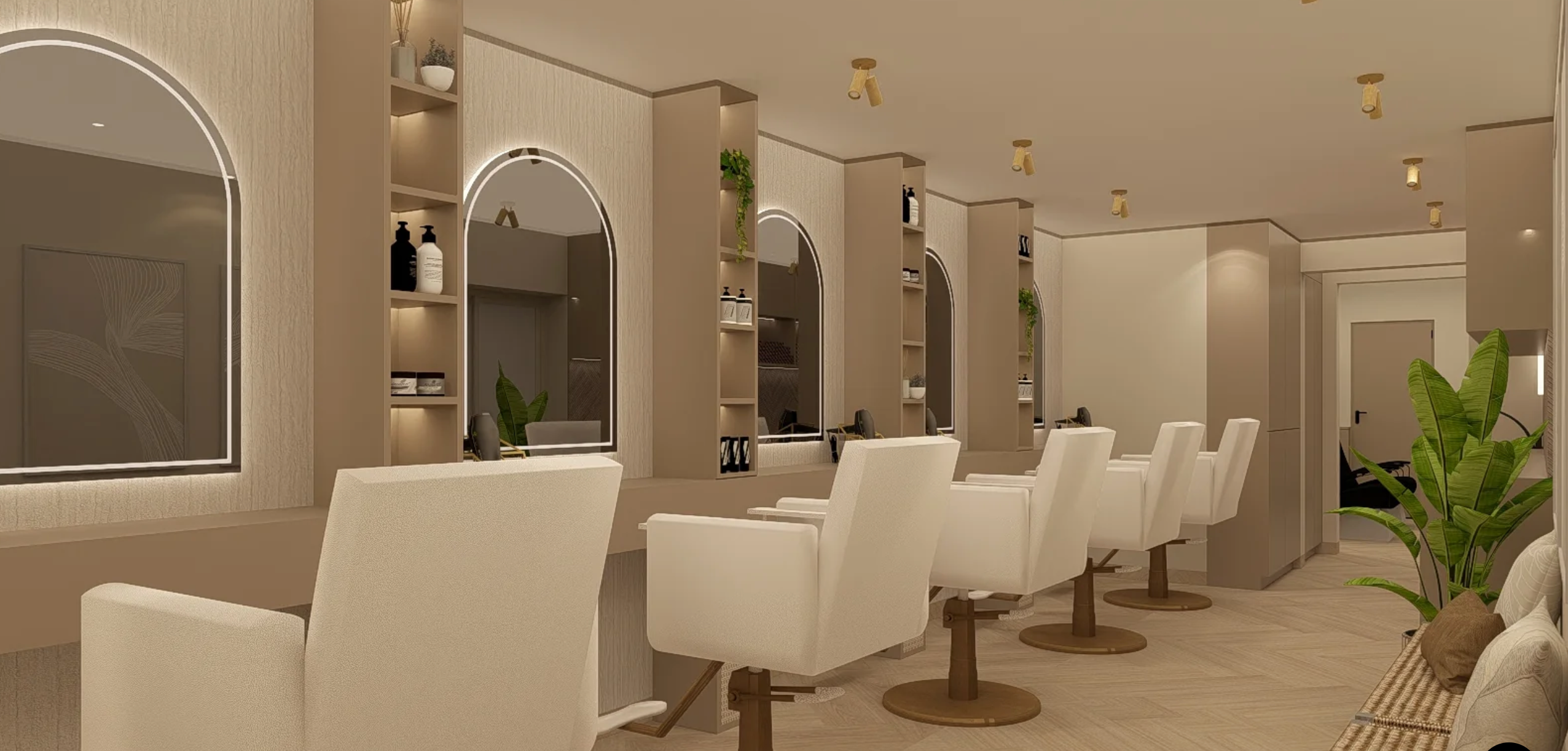 Explore how Simran Design created space planning and 3D visuals for a Sutton Coldfield salon. From hair and nail zones to spa-inspired treatment rooms and a café, we designed a chic, timeless concept for the client to bring to life.